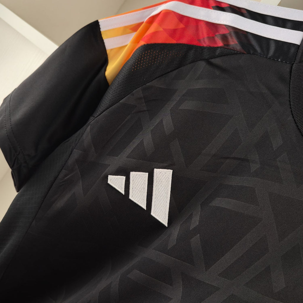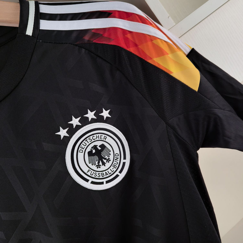 Sintonizando o espírito do futebol alemão. Essa camisa da Alemanha reúne todos os símbolos dos quatro vezes campeões mundiais. O design inspirado nas penas de águia enfeita os ombros, enquanto detalhes em alto-relevo retirados do logo da DFB se repetem na parte frontal. Feita para um suporte confortável, essa camisa conta com tecido AEROREADY para controle de umidade e com um escudo costurado.