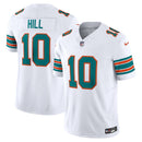 A camisa Miami Dolphins Nike Alternate Vapor F.U.S.E. Limited na cor Aqua e Branco foi desenvolvida para fãs que procuram uma aparência autêntica e um toque similar ao usado pelos jogadores em campo. Este modelo conta com um design inspirado no equipamento oficial, apresentando detalhes em rede Chainmaille no colarinho e o escudo metálico da NFL. A tecnologia Vapor F.U.S.E. proporciona um caimento preciso e confortável, enquanto o sistema Dri-FIT® ajuda a afastar a humidade, mantendo a frescura e o conforto durante o uso.