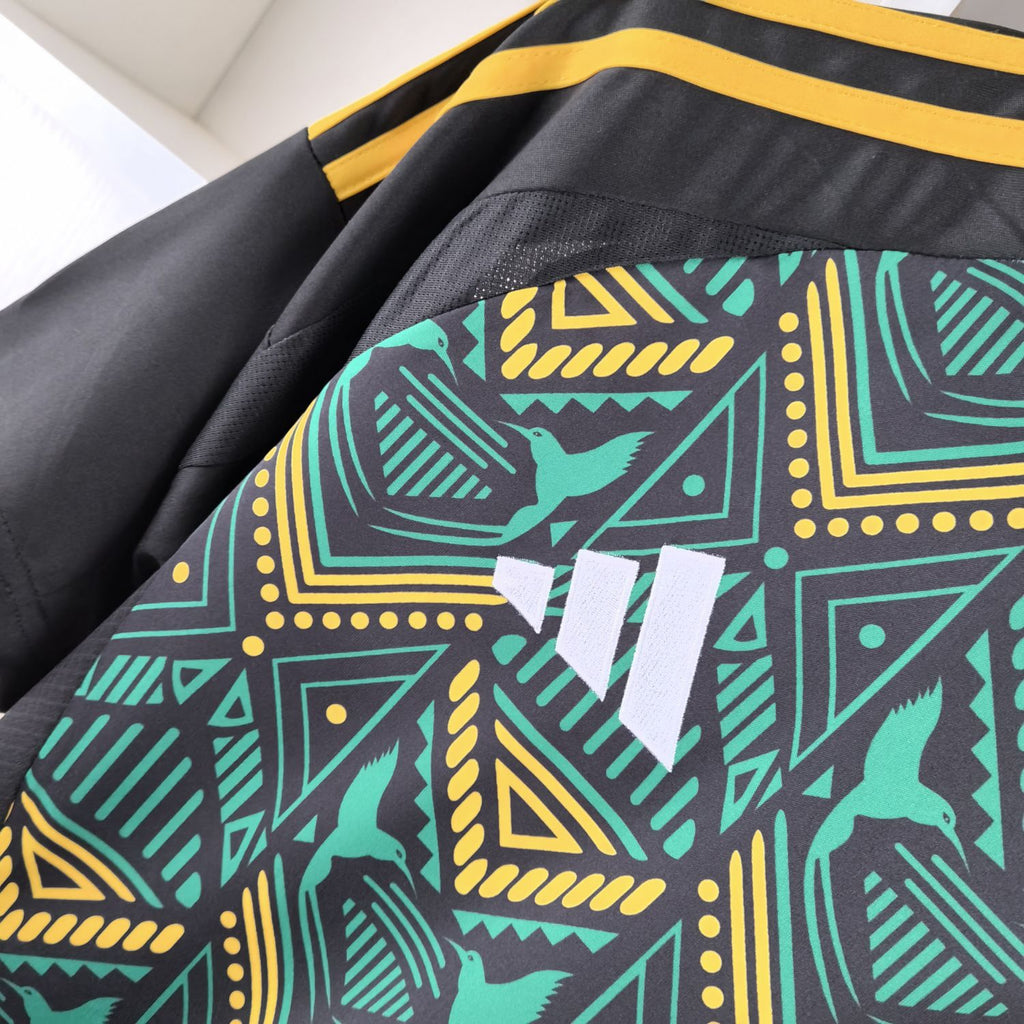 A camisa away da Jamaica 2024 celebra o espírito vibrante e a rica herança cultural do país. Esta camisa de futebol apresenta um design colorido com símbolos nacionais, destacando-se facilmente tanto no campo quanto nas arquibancadas. Projetada para manter os fãs orgulhosos e os jogadores confortáveis, a camisa inclui a tecnologia AEROREADY para gerenciamento de umidade e um emblema bordado da equipe. O principal material da camisa é 100% reciclado, refletindo o compromisso da Adidas com a sustentabilidade.