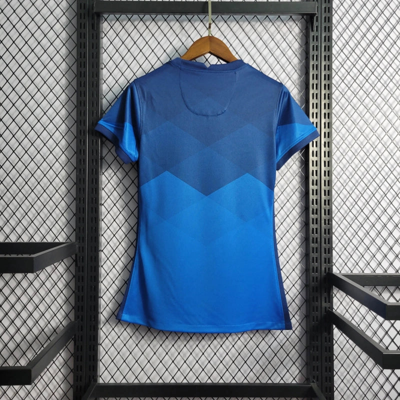 A Camisa 2 Brasil 2020/21 Feminina apresenta um design elegante e moderno, trazendo a icônica cor azul como base, em homenagem às conquistas históricas da Seleção Brasileira vestindo esse tom. Inspirada nas riquezas naturais do país, a estampa sutil traz grafismos que remetem às ondas do mar e à energia do futebol brasileiro.