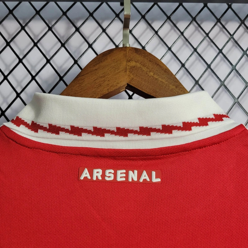 A tradição encontra a inovação com a nova Camisa 1 Arsenal 2022/23, desenvolvida pela Adidas para os verdadeiros Gunners. Este modelo presta homenagem à rica história do clube com um visual clássico em vermelho vivo, complementado por detalhes em branco que evocam os uniformes icónicos do passado.