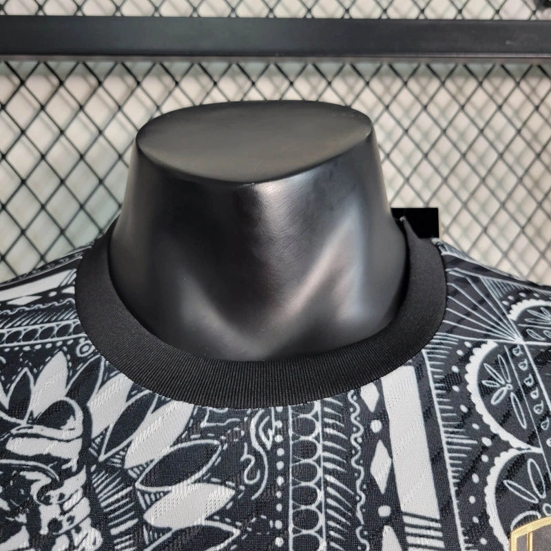 A Camisa Pré-Jogo Arsenal Ian Wright 2024/25 Jogador, desenvolvida pela adidas, é uma edição especial que homenageia a lenda dos Gunners, Ian Wright. O design apresenta gráficos marcantes em preto e branco com detalhes dourados, incluindo o escudo do clube e o logotipo da adidas. A estampa é inspirada em momentos icônicos da carreira de Wright, celebrando seu legado no Arsenal.