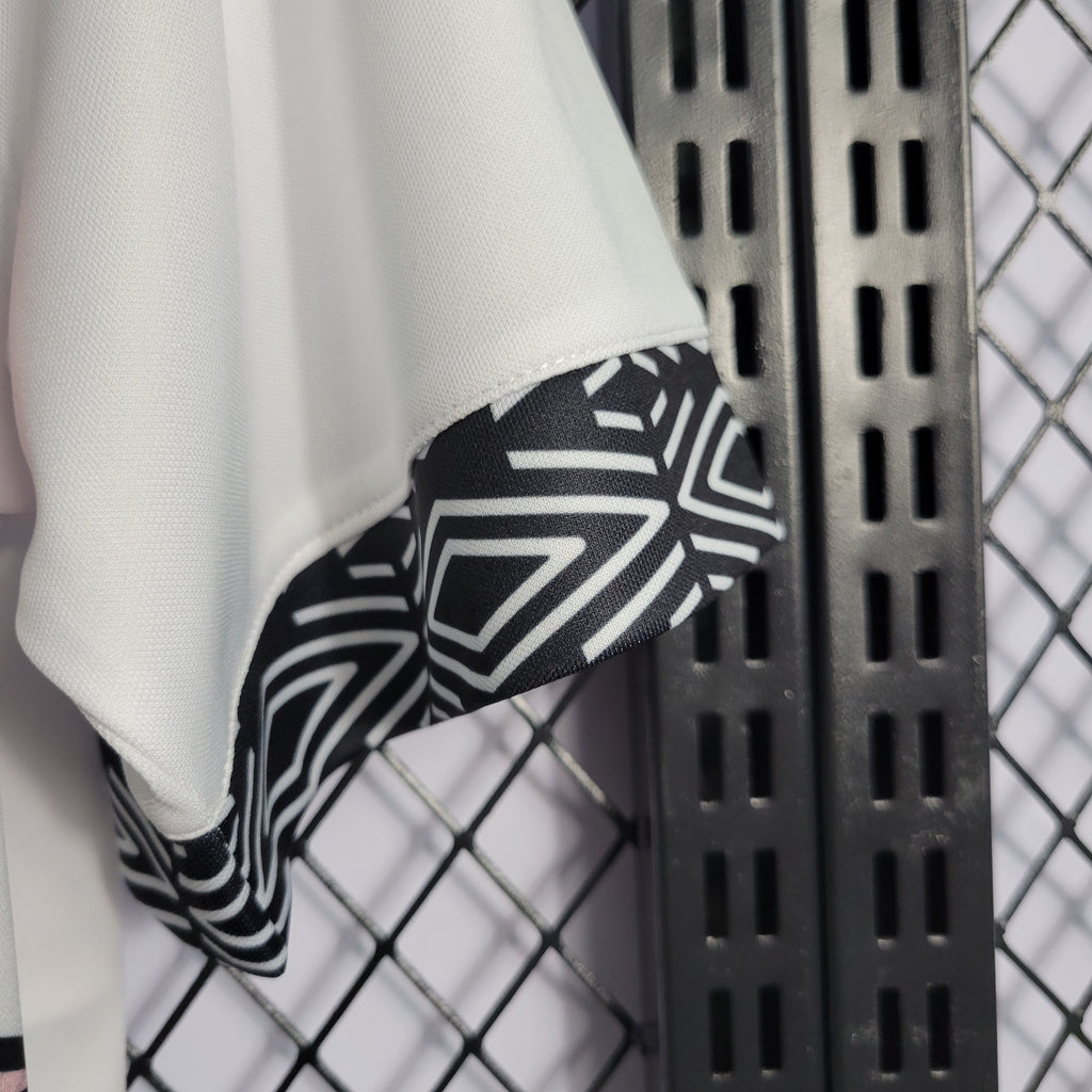 A Camisa 2 Retrô do Atlético Mineiro de 1996 é uma peça icônica que remete ao uniforme reserva utilizado pelo clube naquele ano. Predominantemente branca, destaca-se pelo patrocínio da TAM estampado na parte frontal e detalhes em preto, incluindo o escudo do clube bordado no peito esquerdo.