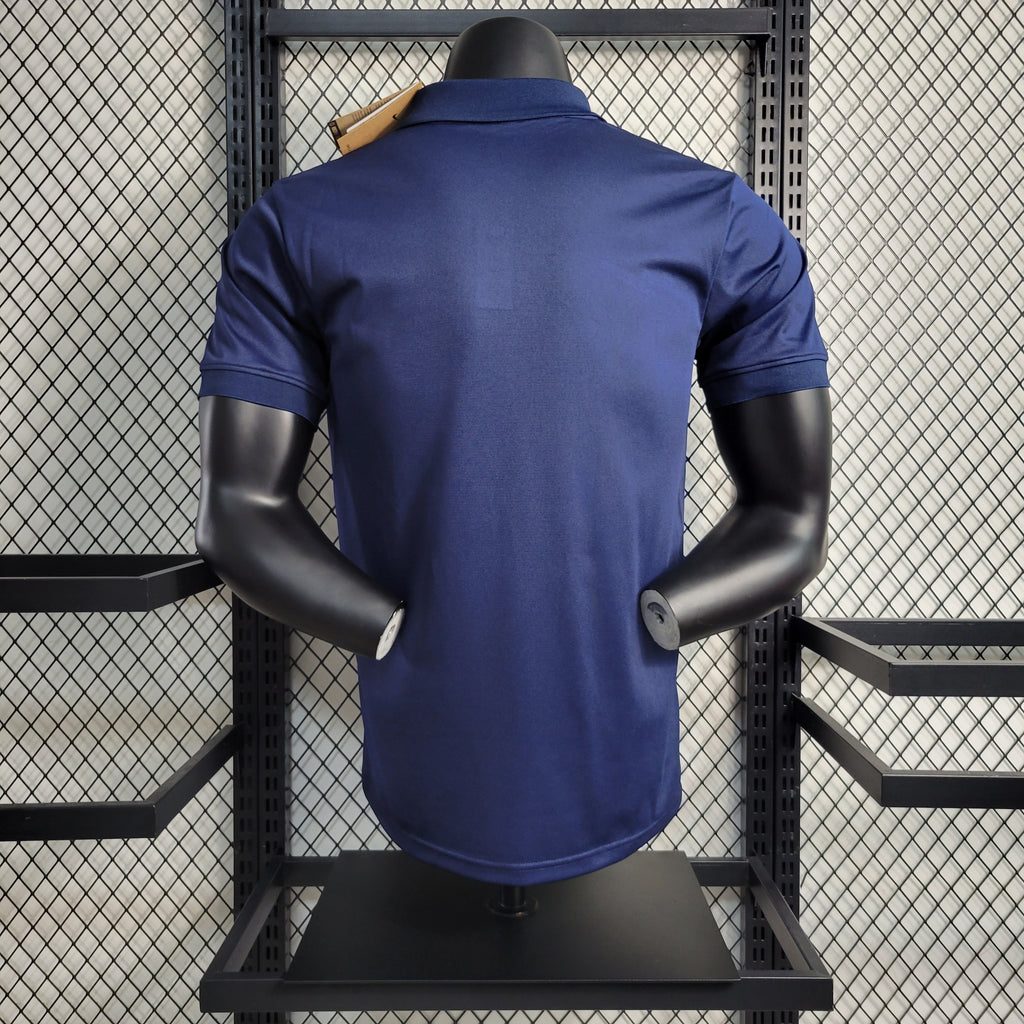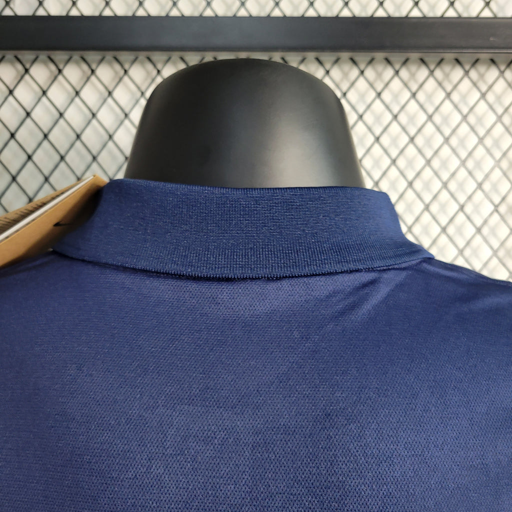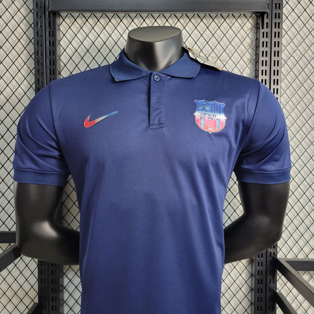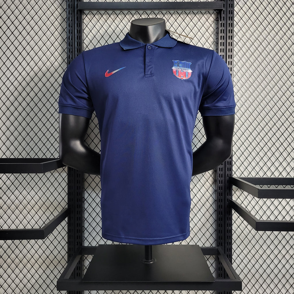A camisa polo do FC Barcelona da temporada 2022/23 combina elegância e simplicidade, perfeita para os torcedores que buscam um visual casual com um toque esportivo. Design Minimalista: O modelo é inteiramente azul-marinho, oferecendo um visual clássico e sofisticado. A gola polo com dois botões reforça o estilo casual, ideal para o dia a dia.