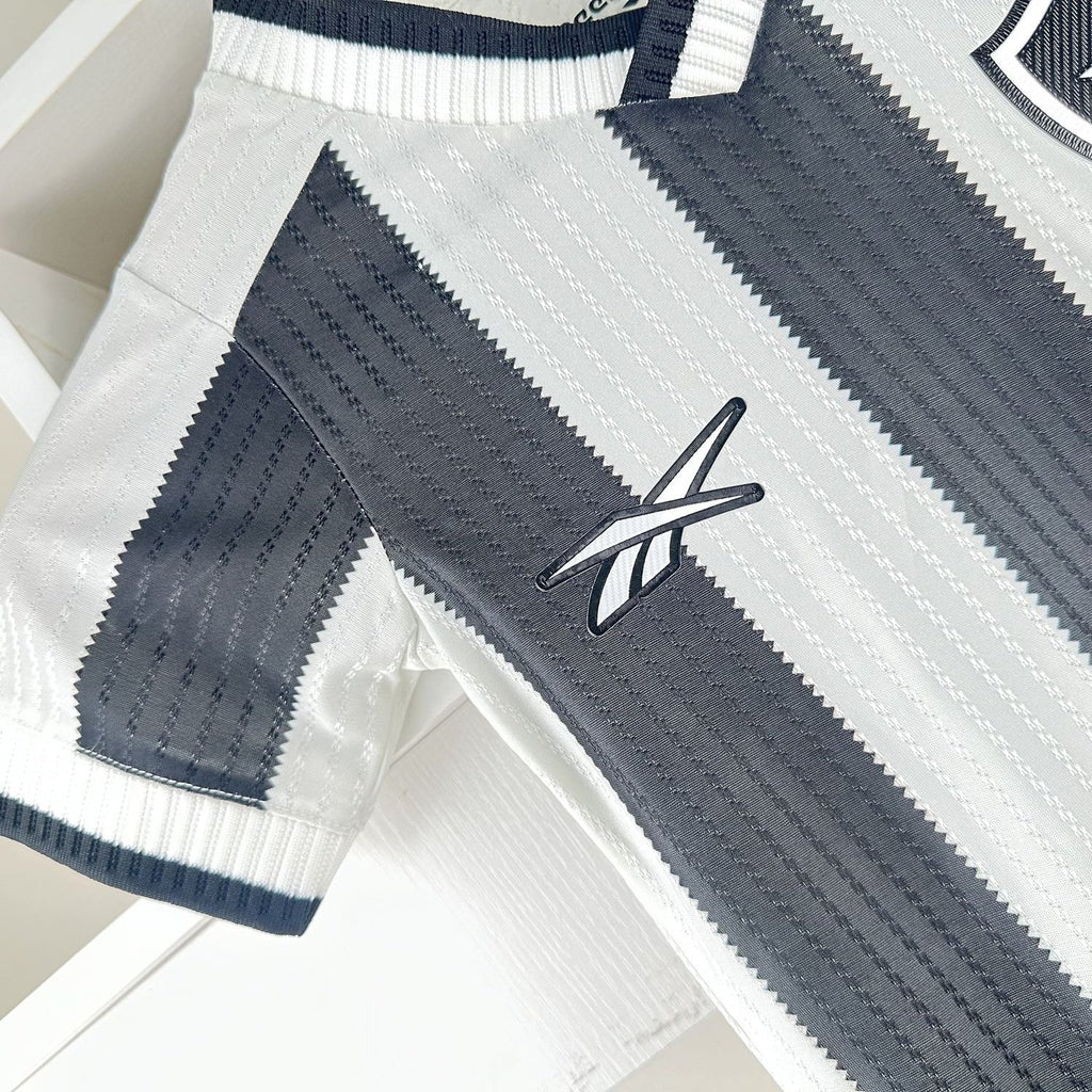 A icônica e inconfundível camisa listrada ganhou um design que homenageia os 130 anos de tradição da Estrela Solitária. Com textura em zig zag que busca remeter ao tecido do tricô usado na década de 50 e 60 e selo comemorativo aplicado na borda, o uniforme I transforma a camisa alvinegra em uma escolha perfeita para qualquer ocasião, seja dentro ou fora dos estádios. Feita com tecnologia de alta absorção, a Gloriosa Camisa conta com o selo SpeedWick de qualidade aplicado na barra. Em material TPU, o escudo do Botafogo ao lado esquerdo do peito e o logo Reebok aplicado ao lado direito, garantem a qualidade do produto.