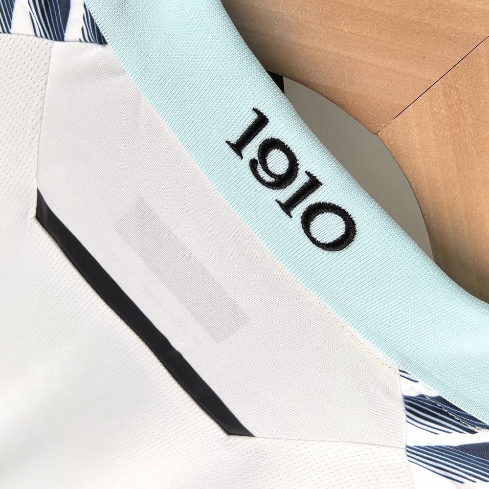 A camisa alternativa do Cádiz FC para a temporada 2024/25 apresenta um design fresco e inovador que sublinha a identidade única do clube. Caracterizado por um branco puro e elegante, é adicionalmente enriquecido com detalhes em um sofisticado azul celeste ao longo da faixa horizontal do peito e nas bordas das mangas. O padrão geométrico sublimado agrega uma dinâmica de movimento e modernidade que reflete a energia e paixão da equipe dentro e fora do campo. A gola é tipo polo e o ano de fundação do clube, 1910, está bordado na nuca e prepare-se para viver uma temporada cheia de estilo.