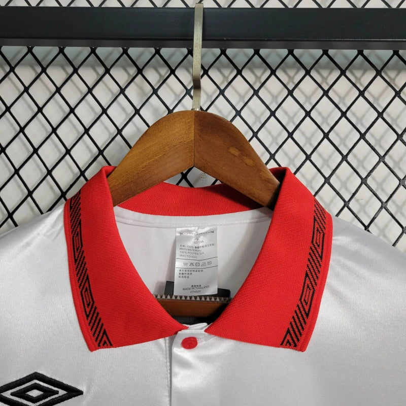 A Camisa 2 Retrô do Flamengo 1994 é um clássico que resgata a essência do Mengão nos anos 90. Com design predominantemente branco, ela traz detalhes em vermelho e preto que representam a força e a tradição rubro-negra. Ícone de uma época, essa camisa é feita com materiais de alta qualidade, garantindo conforto e estilo. Perfeita para colecionadores e torcedores que desejam reviver a história e exibir o orgulho flamenguista.