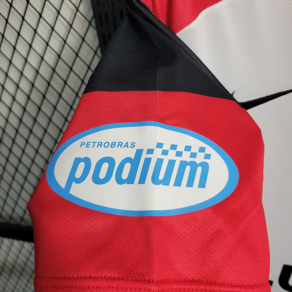 A Camisa 2 Retrô do Flamengo 2008/09 é uma homenagem a uma época marcante da história do Mengão. Com design clássico e detalhes que resgatam a paixão rubro-negra, ela traz a tradicional combinação de branco com toques em vermelho e preto. Feita com materiais de alta qualidade, oferece conforto e estilo, sendo ideal para colecionadores e torcedores apaixonados que querem relembrar os grandes momentos daquele período.