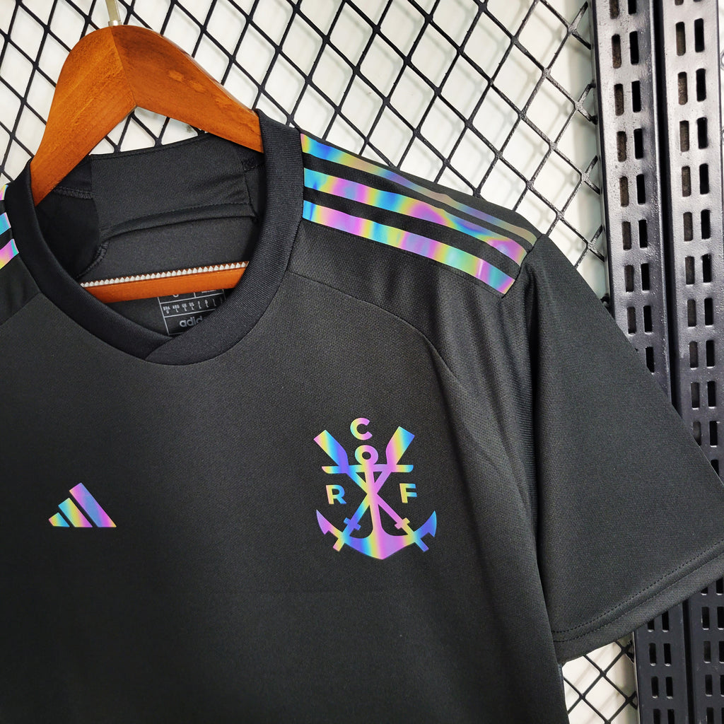 A Camisa 3 Flamengo 2023/24, criada pela Adidas, destaca-se como uma peça ousada e cheia de personalidade, perfeita para torcedores que buscam um manto diferenciado para representar o maior do Brasil. Este uniforme alternativo homenageia a força, a criatividade e a paixão que definem o Flamengo, trazendo um design inovador que celebra a identidade rubro-negra.