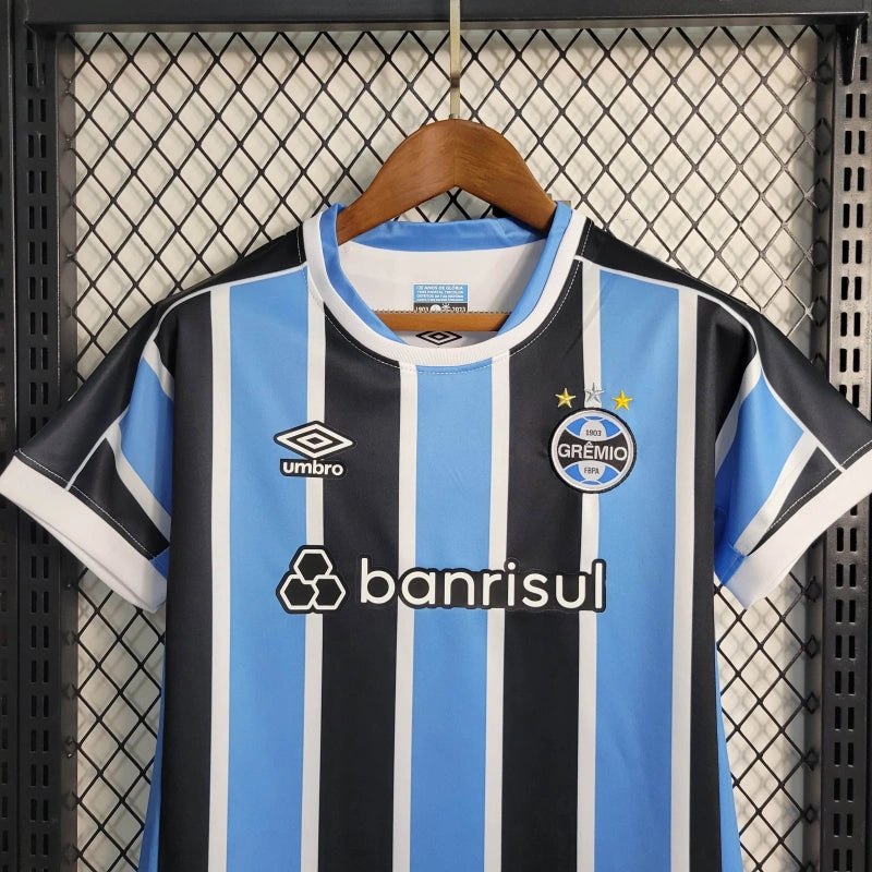 O Conjunto Infantil I do Grêmio para a temporada 2023/24, desenvolvido pela Umbro, celebra os 120 anos de fundação do clube. O kit inclui uma camisa e um calção, ambos confeccionados em 100% poliéster, garantindo conforto e durabilidade para os pequenos torcedores.