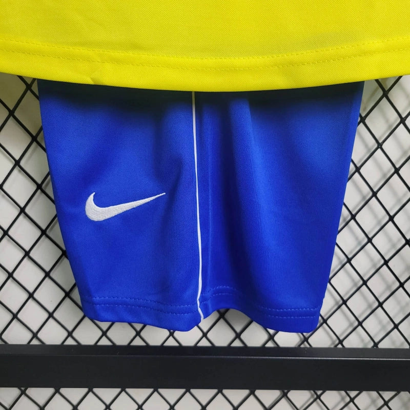 Vista os pequenos com a paixão pelo futebol! O Conjunto Infantil Brasil Retrô 2009 traz o espírito da Seleção Canarinho em um design clássico e cheio de história. Inspirado no uniforme icônico de 2009, este conjunto conta com uma camisa retrô de alta qualidade e um short confortável, garantindo estilo e tradição para os futuros craques.
