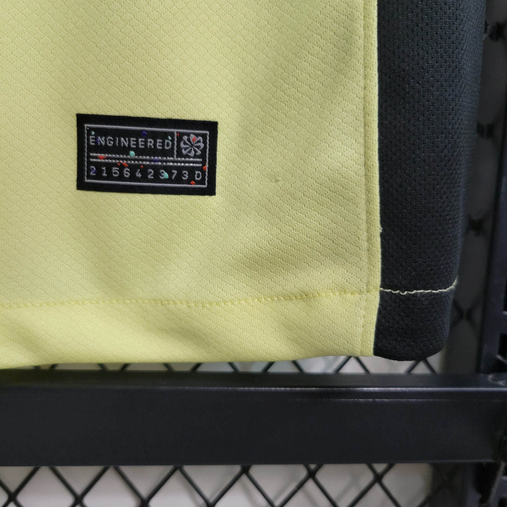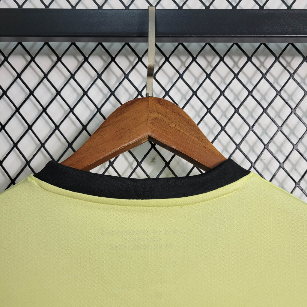 Um momento histórico do passado do clube que define o que é ser Corinthians até hoje. Feita num amarelo vibrante, a nova camisa traz detalhes que fazem referência à camisa usada por jogadores, artistas e jornalistas no Vale do Anhangabaú em 1984, pedindo a volta de eleições diretas no país.
