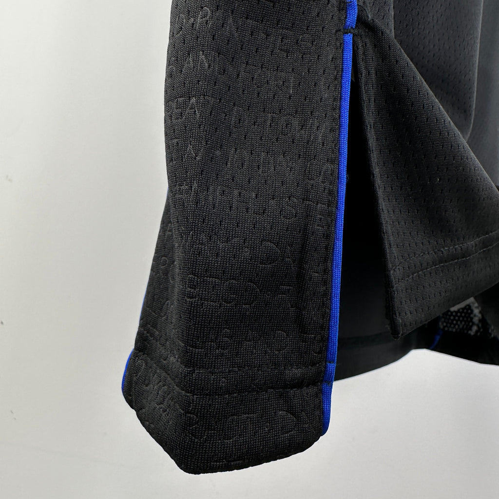 A Dallas Mavericks City Edition Jersey (2021-2022) é uma homenagem à história e à cultura dos Mavericks, combinando elementos modernos e clássicos. Apresenta um design preto arrojado com detalhes em azul, com a palavra "MAVS" em um estilo tipográfico retrô na parte frontal, representando uma conexão nostálgica com os primeiros anos da franquia. O número do jogador, em azul com contorno branco, está centralizado abaixo do nome da equipa. Produzida pela Nike, esta camisa faz uso da tecnologia Nike Dri-FIT, que garante maior conforto e ventilação. Esta edição especial foi criada para celebrar o legado dos Mavericks enquanto se conecta com os seus fãs através de um design icônico e significativo.