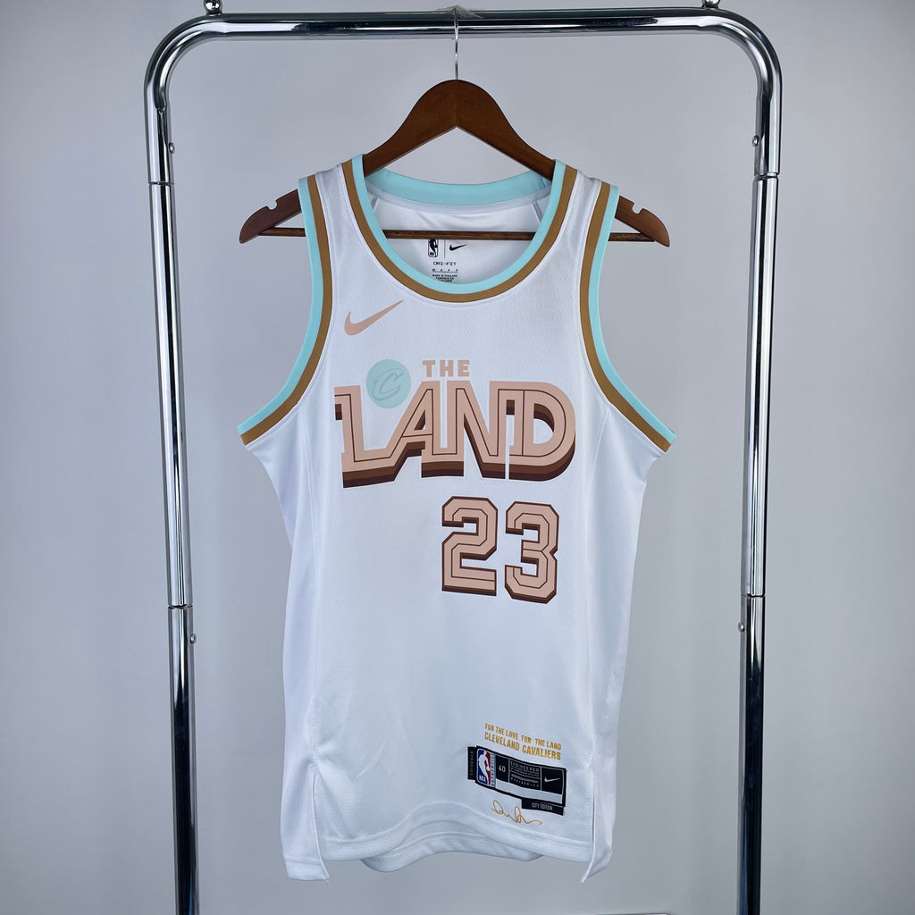 A regata é predominantemente branca, com detalhes e elementos gráficos inspirados na cidade, apresentando um toque moderno e urbano. Feita com materiais de alta qualidade, ela oferece conforto e durabilidade, sendo ideal tanto para uso casual quanto para prática de desportos. Possui o logótipo dos Cleveland Cavaliers no peito e o número e nome do jogador nas costas, com uma construção que imita as regatas usadas pelos jogadores durante os jogos.