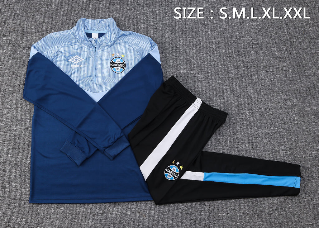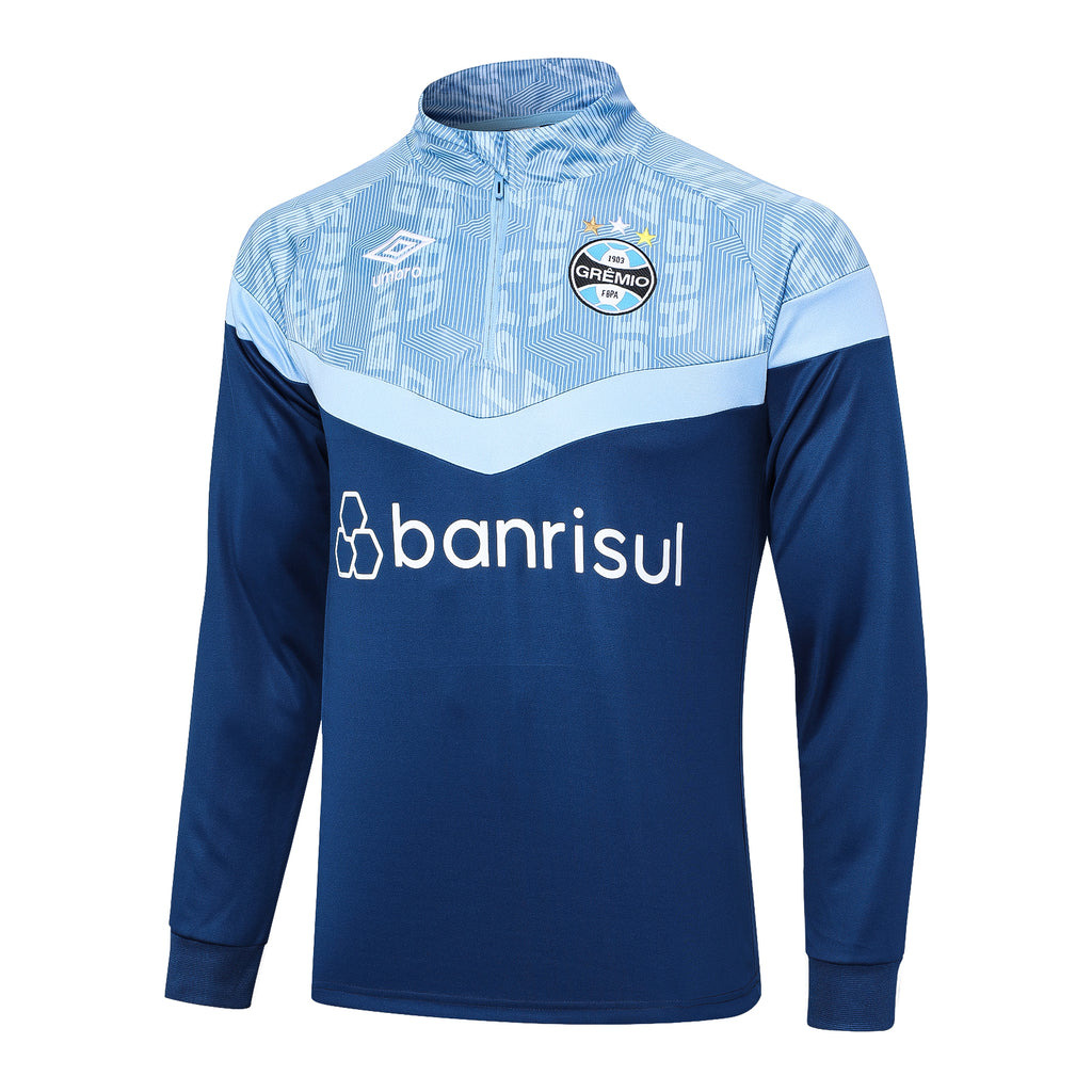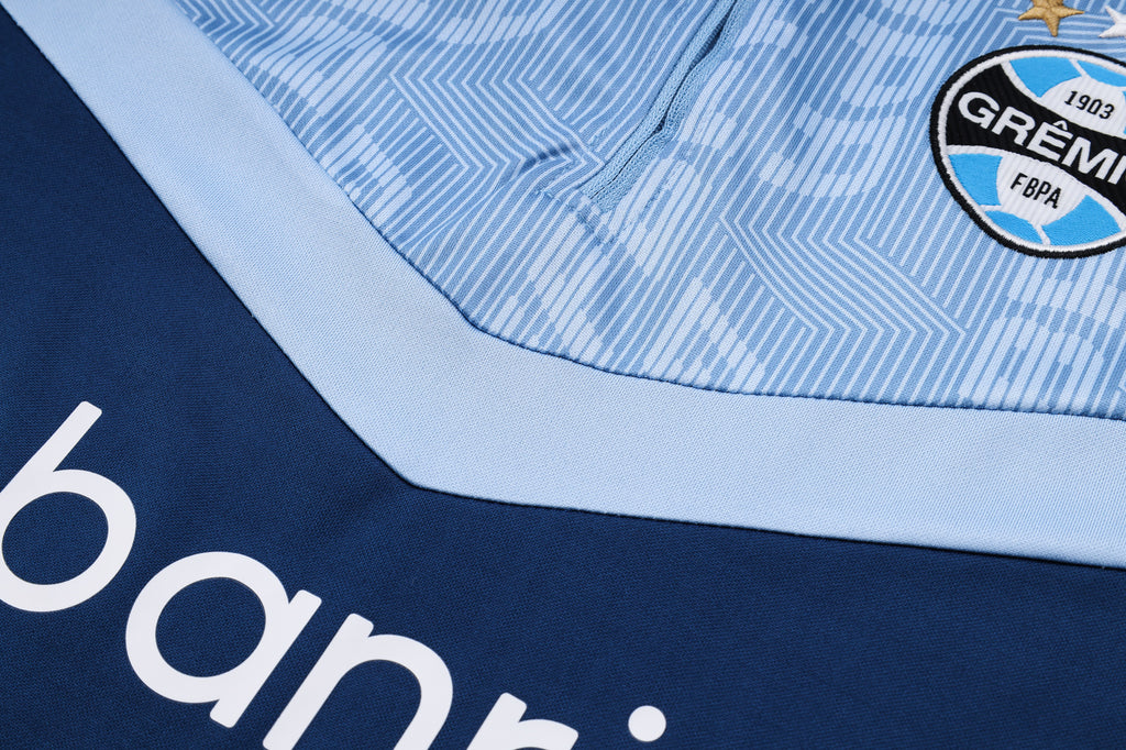 O Agasalho de Treino Grêmio 2023/24 foi projetado para garantir o máximo de desempenho e conforto aos atletas e torcedores. A jaqueta possui um design quarter zip, com fecho até a metade do peito, permitindo uma ventilação ajustável durante os treinos. Sem bolsos, a peça oferece um visual limpo e moderno, ideal para treinos e atividades físicas. O tecido é leve, respirável e de secagem rápida, garantindo o conforto em qualquer situação. A cor azul-marinho, com o escudo do Grêmio em destaque no peito, simboliza a paixão pelo clube. Esta peça é perfeita para quem deseja treinar com o máximo de estilo e performance