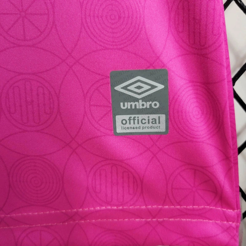 A Camisa Outubro Rosa do Grêmio para a temporada 2023/24 é uma edição especial desenvolvida pela Umbro em apoio à campanha de conscientização sobre o câncer de mama. Com um design predominantemente rosa vibrante, a camisa apresenta detalhes que remetem ao autoexame das mamas, reforçando a importância da prevenção.