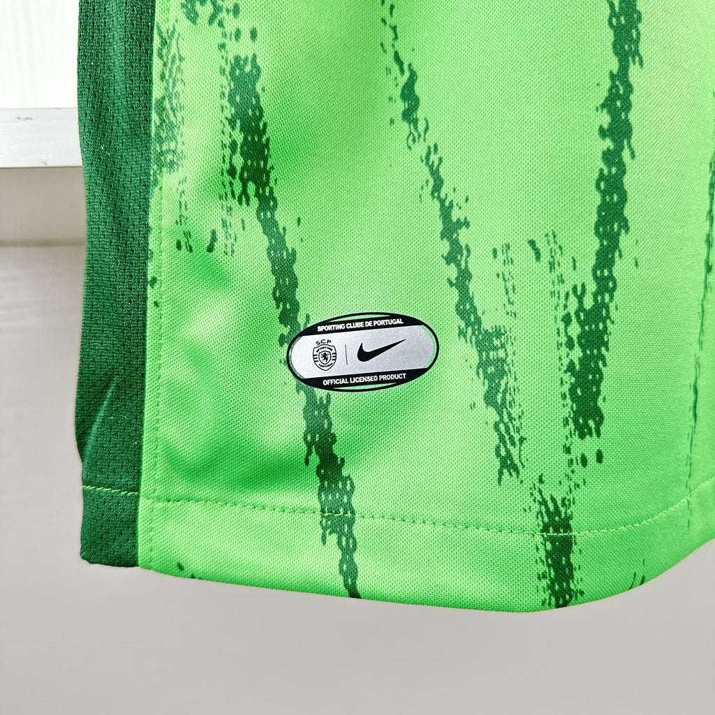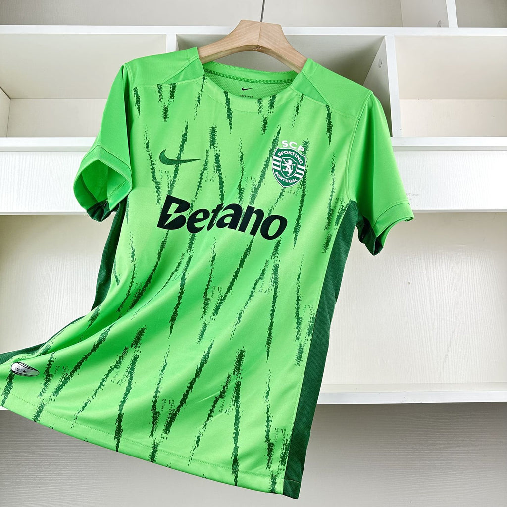 A terceira camisa do Sporting Clube de Portugal para a época 2024/2025, batizada de "Verve", foi apresentada pela Nike e destaca-se pela sua energia e vibração, traduzindo o espírito competitivo dos "leões". O design é dominado pela cor verde em dois tons: um verde claro como base e detalhes em verde escuro dispostos em zigue-zague com um estilo grunge. A gola é redonda, e o escudo do clube está posicionado no lado esquerdo do peito, enquanto o logótipo da Nike aparece em verde no lado direito.