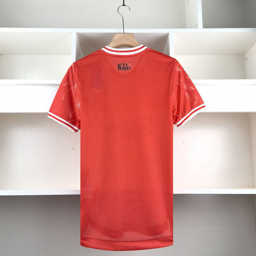 A nova camisa do Liverpool, em parceria com os lendários Beatles, é uma ode à rica história do clube e um tributo à era dourada do futebol inglês. Inspirada no modelo clássico de 1989/90, a peça une o passado e o presente em um design atemporal e cheio de significado.