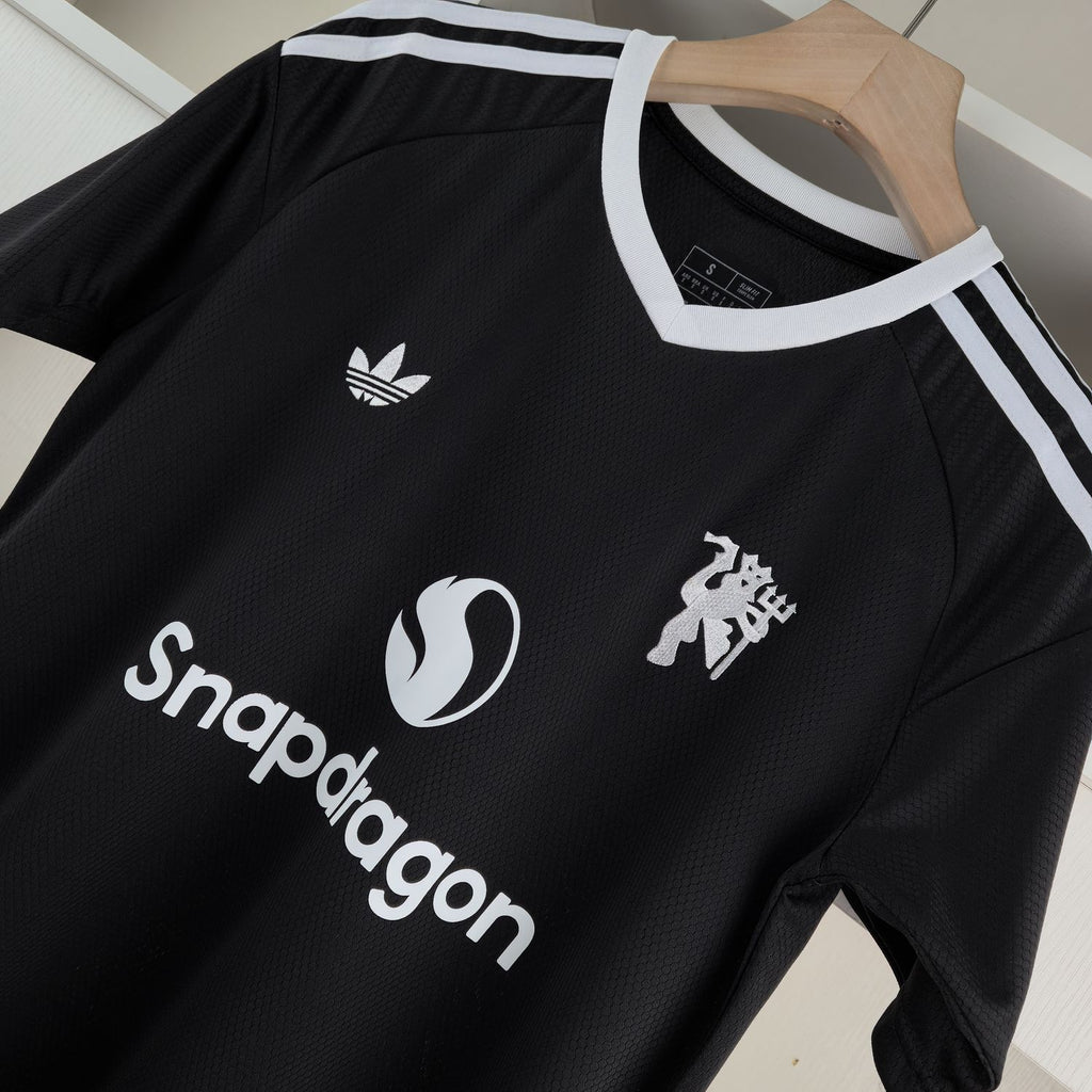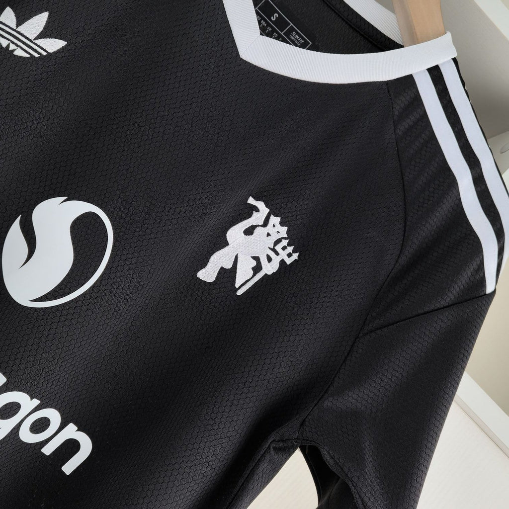 A camisa de goleiro do Manchester United para a temporada 2024/25 com o logotipo Trefoil da Adidas apresenta um design que equilibra estilo e funcionalidade. Este uniforme é destacado por sua base preta com detalhes sofisticados que trazem modernidade, combinando com o emblema clássico do Manchester United, o "Red Devil". O logotipo Trefoil marca o retorno de um símbolo icónico da Adidas, trazendo um toque nostálgico ao design contemporâneo.