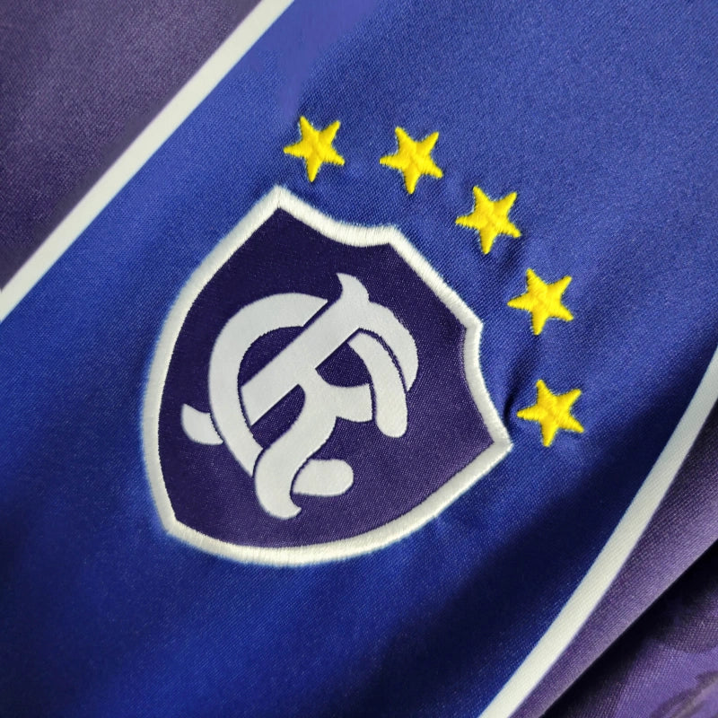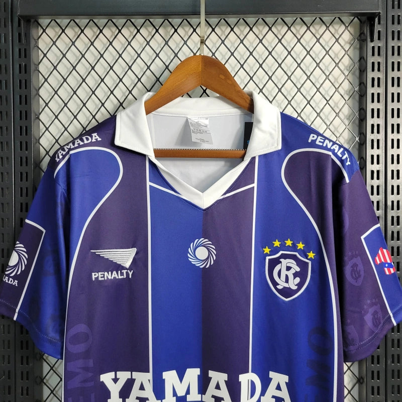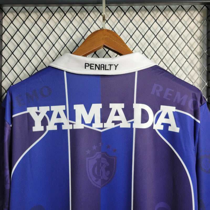 A camisa titular do Clube do Remo nas temporadas de 1998 e 1999, produzida pela Penalty, é um manto histórico que marcou a trajetória do clube. Predominantemente azul-marinho, a peça apresenta detalhes em branco, incluindo finas listras verticais que conferem um design clássico e elegante. O escudo tradicional do Remo está posicionado no lado esquerdo do peito, enquanto o logotipo da Penalty aparece no lado direito. O patrocínio principal da época, da empresa Yamada, está estampado em destaque no centro da camisa. Este uniforme foi utilizado em competições importantes, como a Série B de 1998 e o Campeonato Paraense de 1999, no qual o Remo sagrou-se campeão.