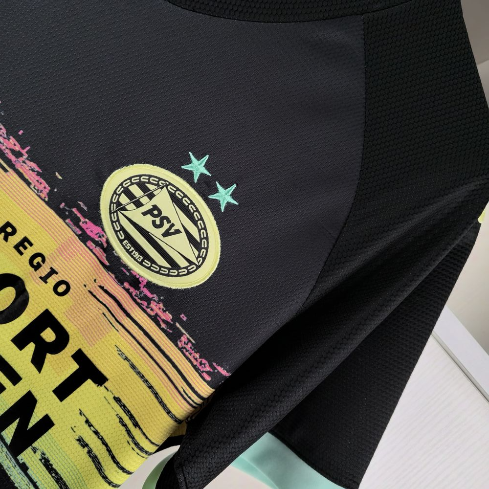 O PSV Eindhoven é um clube de muitas estreias - o primeiro a ter um campo totalmente iluminado, o primeiro a voar para jogos no exterior e o primeiro clube a transmitir um jogo ao vivo. O kit 24/25 Away é inspirado nessa atitude sem limites. Esta camisa apresenta tecnologia dryCELL que absorve a umidade e inserções de malha estrategicamente posicionadas para mantê-lo fresco e focado no jogo.