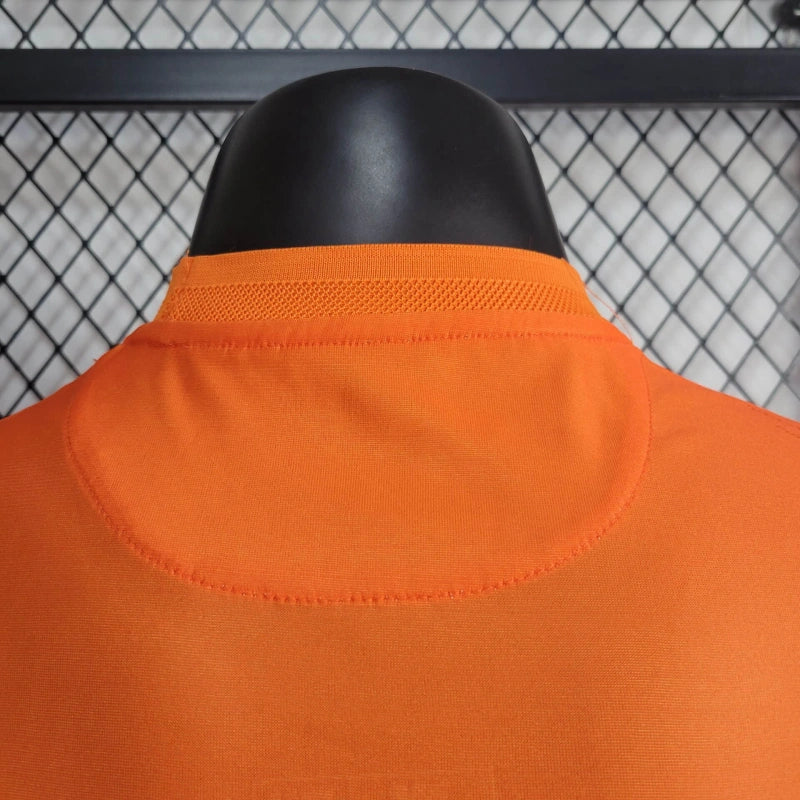 A Camisa de Goleiro do Real Madrid para a temporada 2024/25, fruto da colaboração com a Y-3, apresenta um design arrojado em laranja vibrante. Esta parceria entre o clube e a marca de Yohji Yamamoto resulta em um uniforme que combina estilo contemporâneo com funcionalidade esportiva.