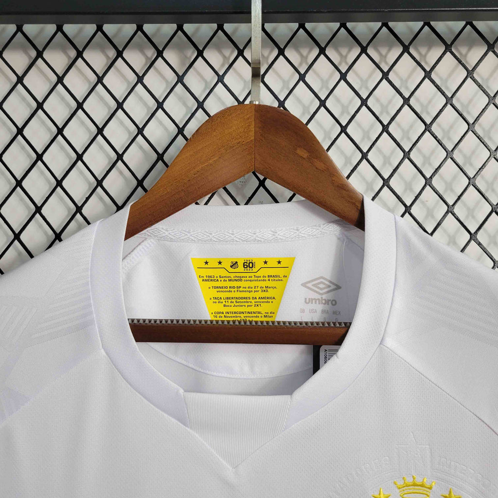 A Camisa 1 do Santos Futebol Clube para a temporada 2023/24, desenvolvida pela Umbro, celebra os 60 anos das conquistas históricas de 1963, quando o clube venceu o Torneio Rio-São Paulo, a Taça Libertadores, a Taça Brasil e a Copa Intercontinental.