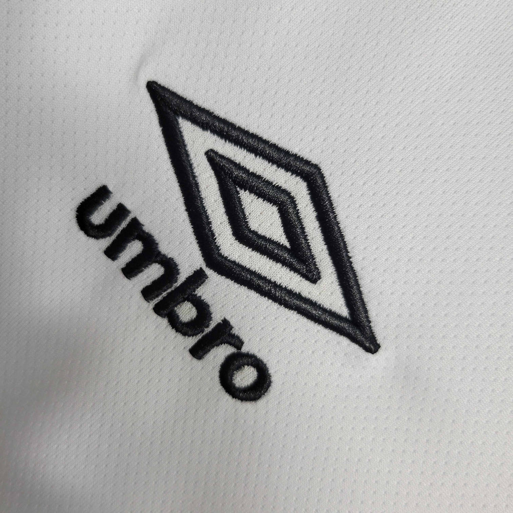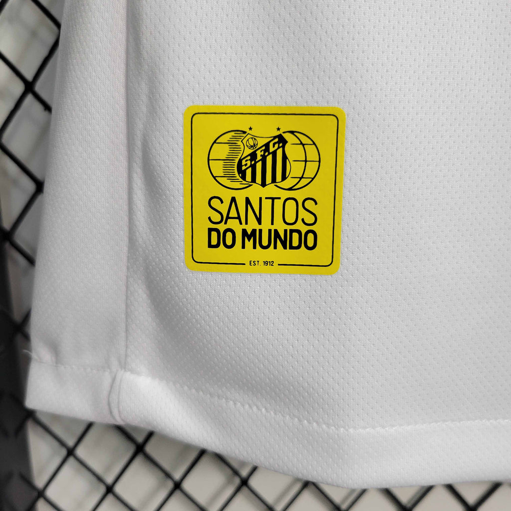A Camisa Feminina Umbro Santos Oficial 1 da temporada 2023/24 celebra os 60 anos das conquistas históricas de 1963, quando o Santos alcançou o topo do Brasil, da América e do mundo. O design apresenta gola em V, mangas curtas e recortes laterais para maior conforto. Destaca-se pelo selo personalizado "Santos do Mundo" e uma coroa sobre o escudo em homenagem ao Rei Pelé.