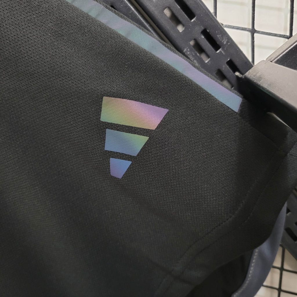 A Bermuda 3 do Flamengo 2023/2024, da Adidas, é moderna e funcional, com design predominantemente preto que combina perfeitamente com a terceira camisa do clube. Confeccionada em tecido macio e de alta qualidade, incorpora a tecnologia AEROREADY, que absorve o suor e mantém o corpo seco e confortável. Os detalhes incluem o escudo do Flamengo e o logotipo da Adidas, reforçando autenticidade e orgulho rubro-negro.