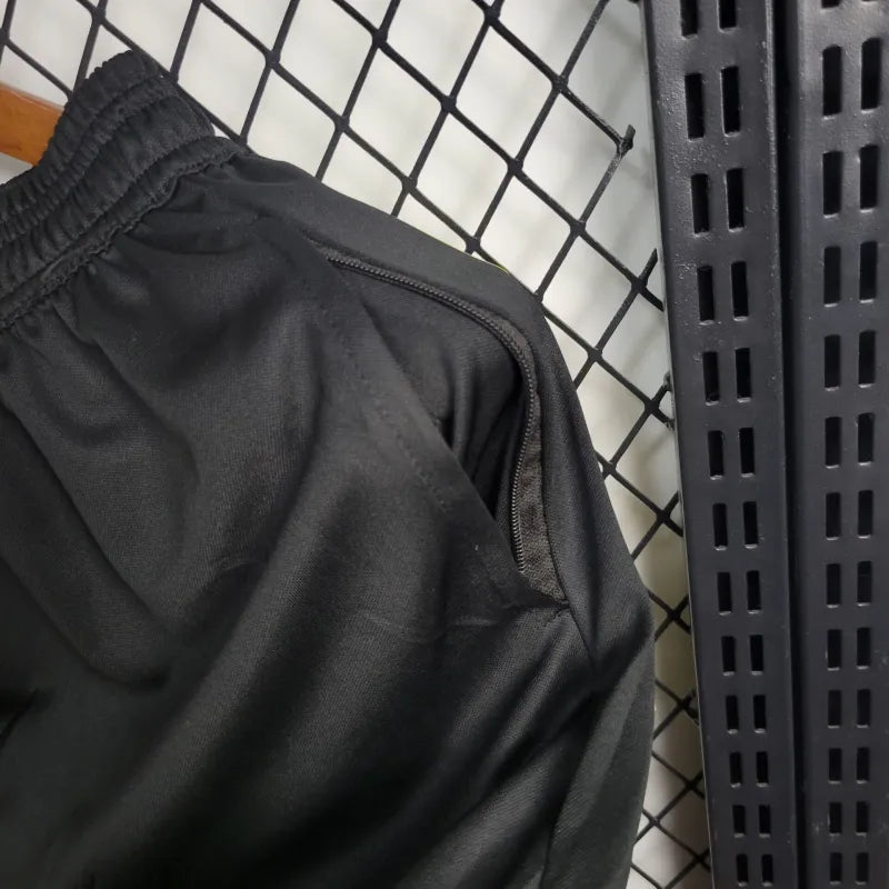 Ela é predominantemente preta, confeccionada em material leve e respirável, garantindo conforto e liberdade de movimento. Detalhes em amarelo trazem um contraste vibrante e moderno, reforçando a identidade visual da temporada.