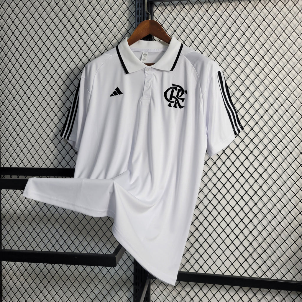 Mostre sua paixão pelo Mengão com um toque de elegância! Esta polo da temporada 2023/24 combina estilo casual e identidade rubro-negra. Com design predominantemente branco ou vermelho, ela traz detalhes em preto que destacam o escudo do Flamengo no peito e as clássicas três listras da Adidas nos ombros.