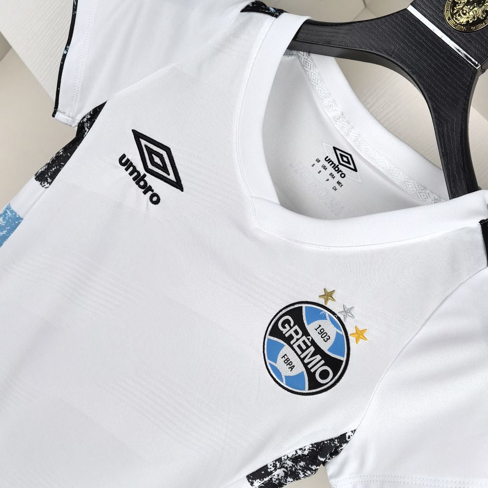 Vista o manto Tricolor com orgulho! A Camisa 2 Grêmio feminina 2024 Torcedora é a essência da paixão e estilo. Com modelagem fit e detalhes únicos, celebra a tradição gaúcha, homenageando o Chimarrão, exibe na barra externa etiqueta do desenho minimalista do Campo, Marte e Sol. Faça parte da torcida com estilo autêntico.